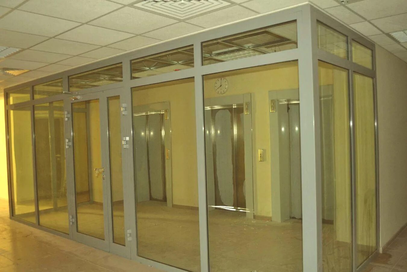 Противопожарные перегородки до потолка могут изготавливаться как в полностью остекленном варианте, так и в частично остекленном исполнении. Основное предназначение таких конструкций — это разделение общего помещения на несколько отдельных рабочих зон. При этом преследуется несколько целей: